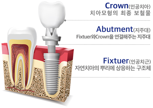 임플란트의 구성은 자연 치아 뿌리 부분에